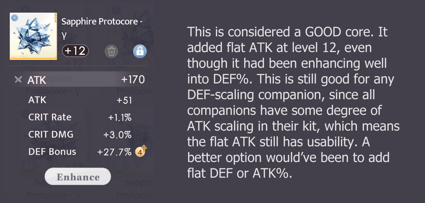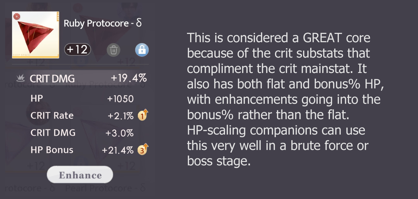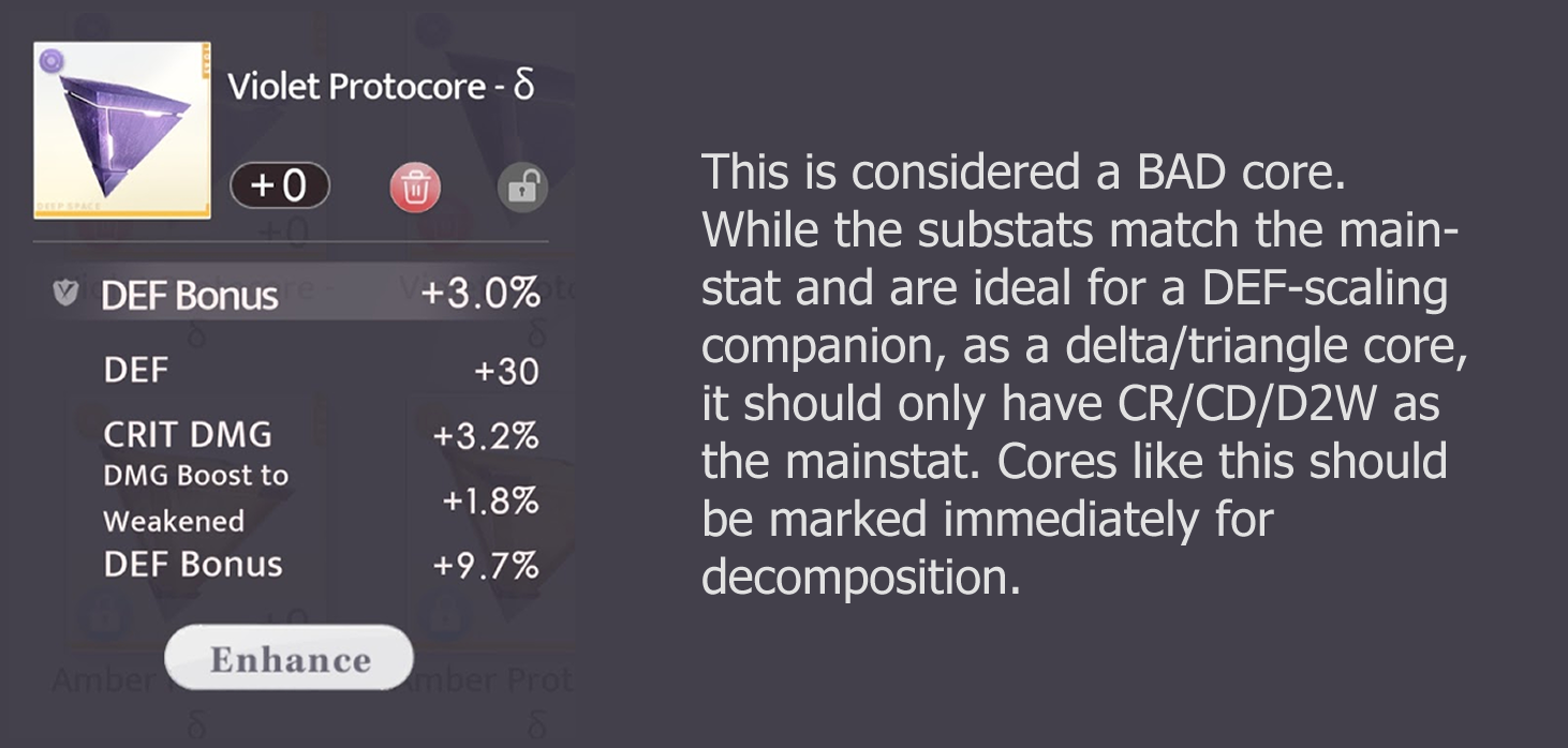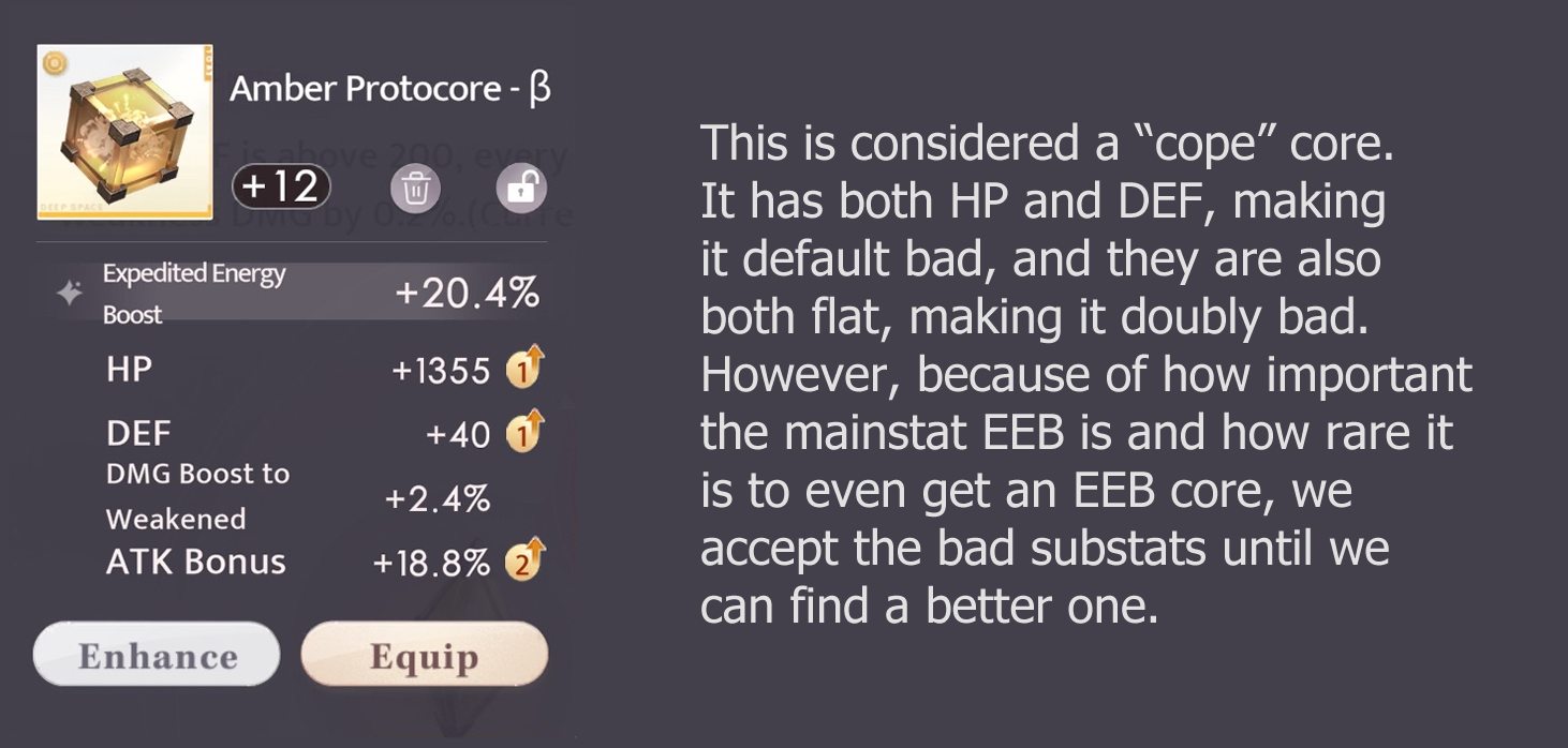- Cores with a combination of both HP and DEF substats are bad. No playable companion uses both stats, therefore cores with both stats will always have one usable stat but also one dead stat.